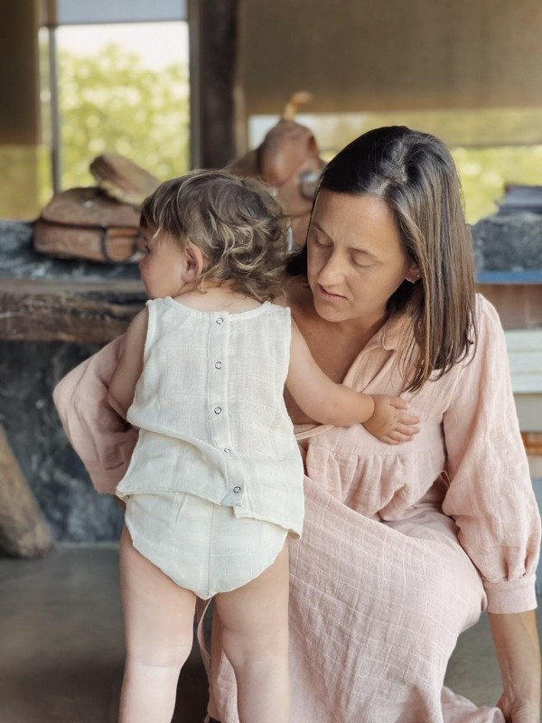 Musculosa con botones a presión en la espalda, que permiten comodidad para cambiar al bebé fácilmente.