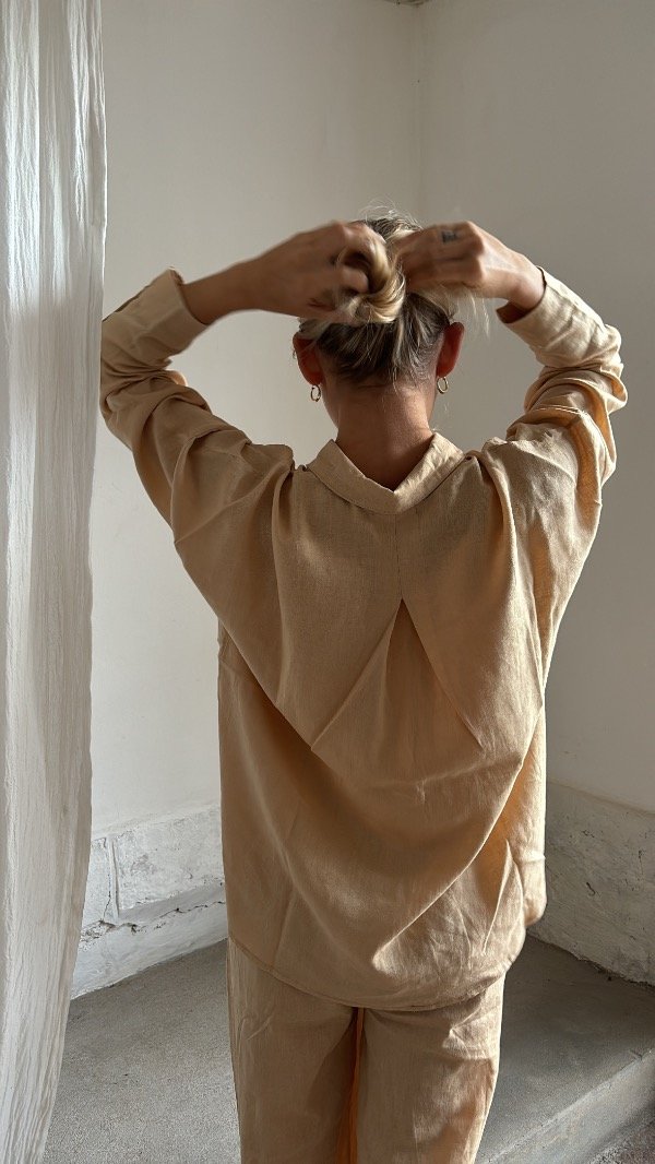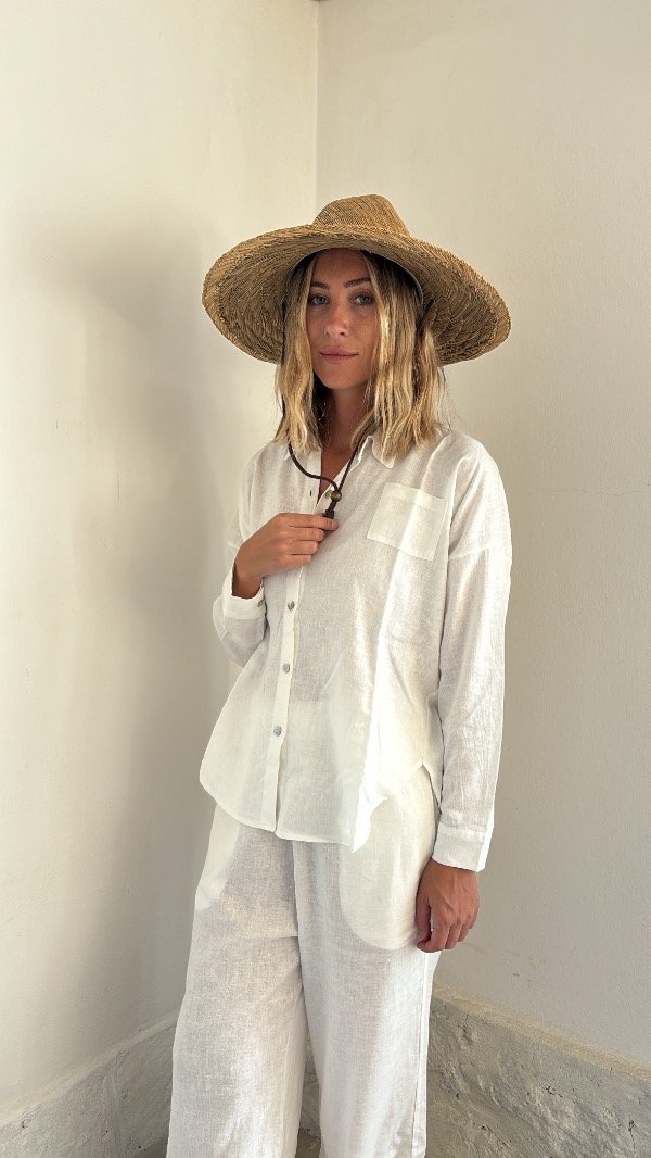 Camisa corte ancho, terminación curva para usar también atada