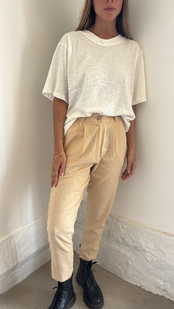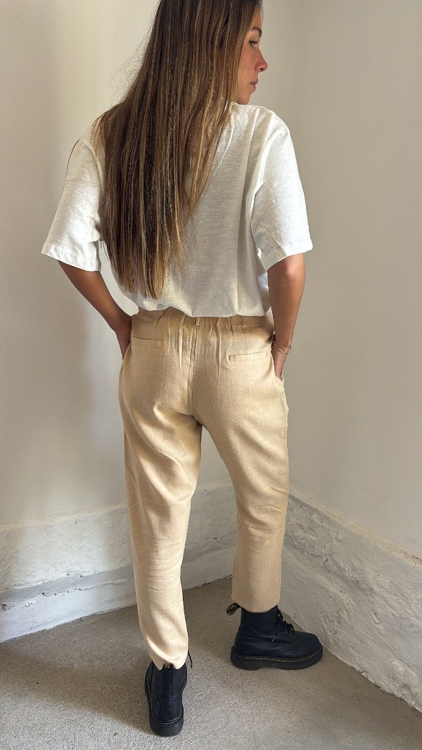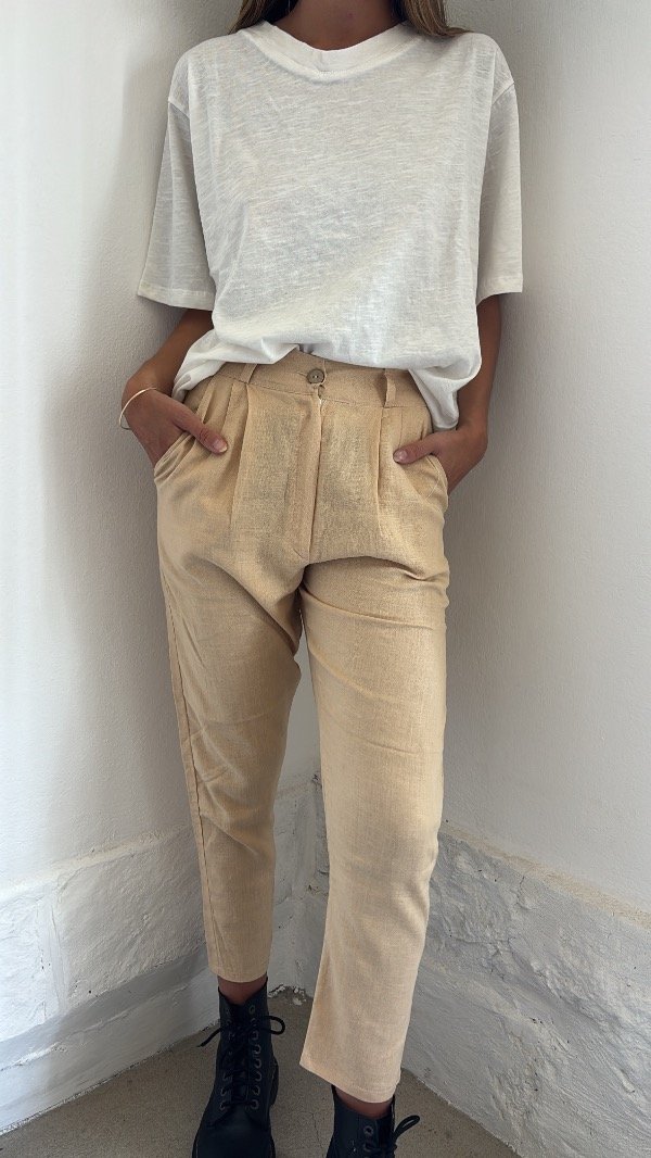 Pantalón pinzado suave, cintura elastizada en trasero, con cierre y botón de coco