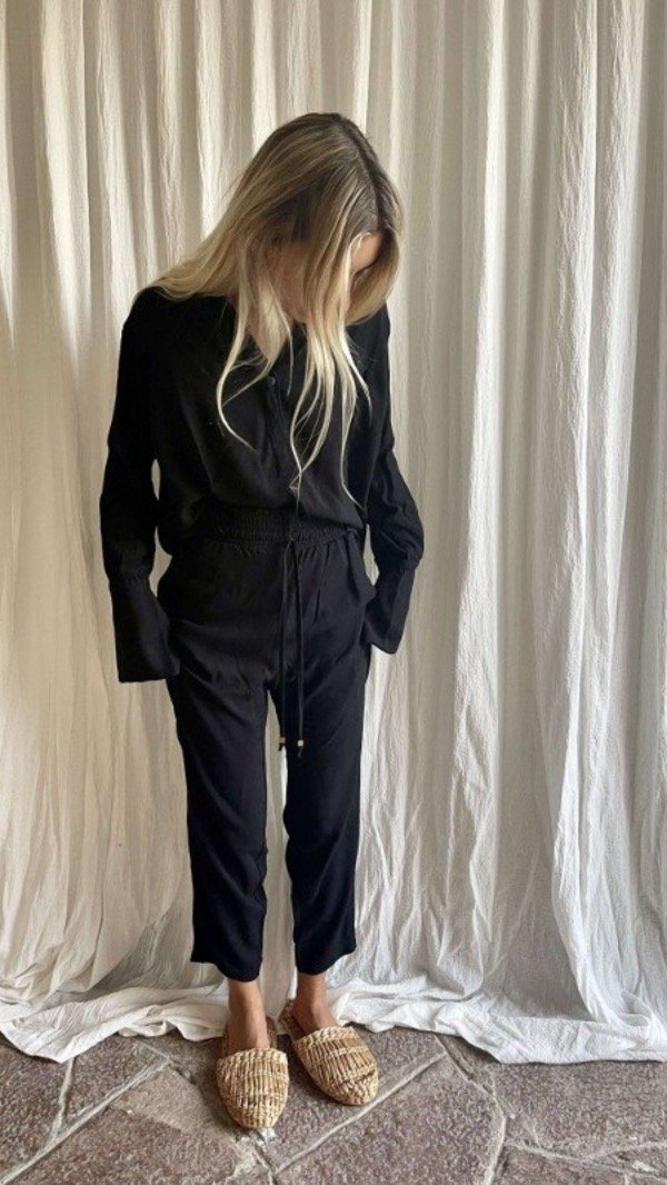 Pantalón de lino mezcla fino con cintura elastizada con terminales en cinta regulable, corte recto con bolsillos laterales